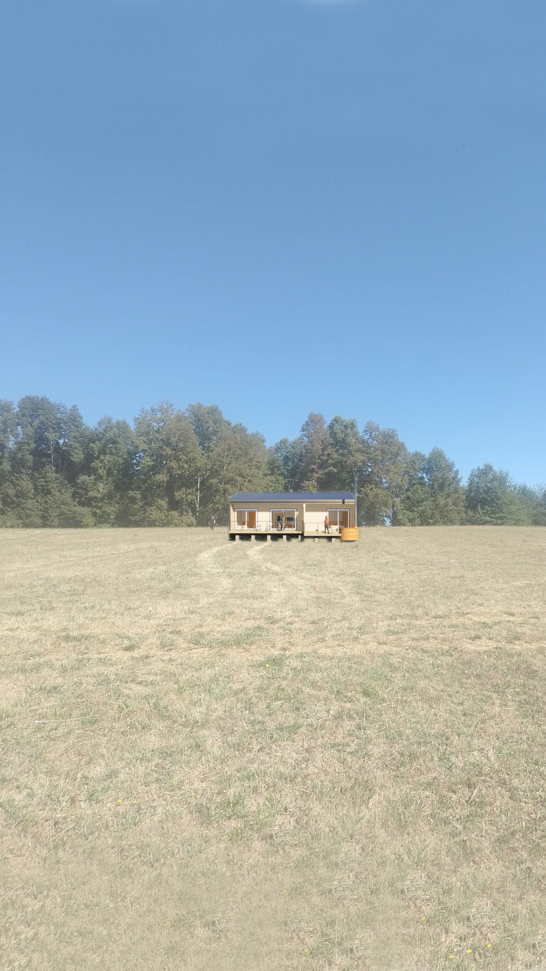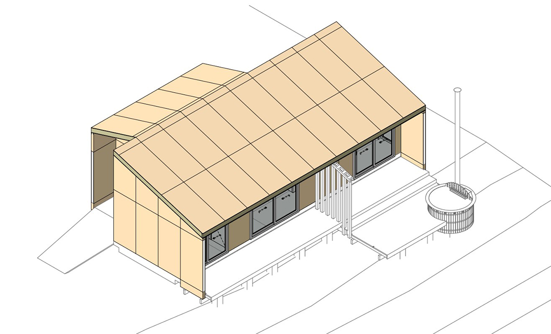 Querían hacer una cabaña para arriendo turístico.  Algo de alrededor de 50 a 60m2, con 2 dormitorios, 1 baño y Estar, comedor, cocina Integrados. Pensando en alojar a una familia promedio, de 4 a 6 personas.