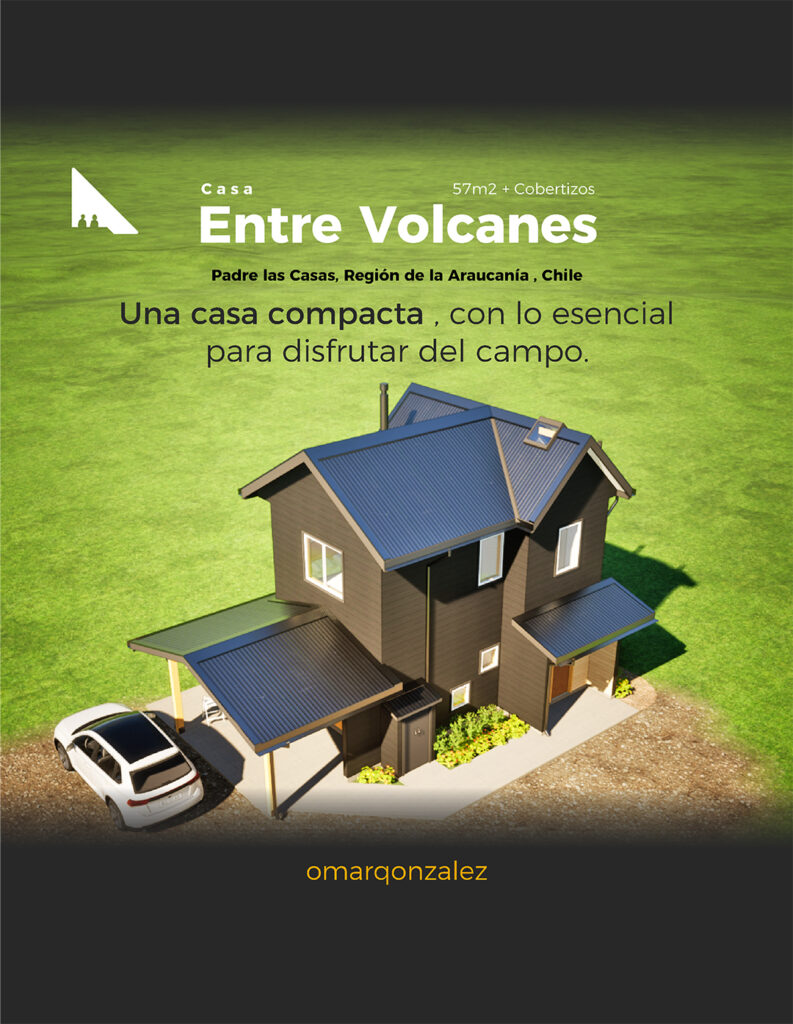Este diseño me lo encargó una cliente que se compró una parcela, entre Padre Las Casas y Cunco, cerca de Temuco, Chile.