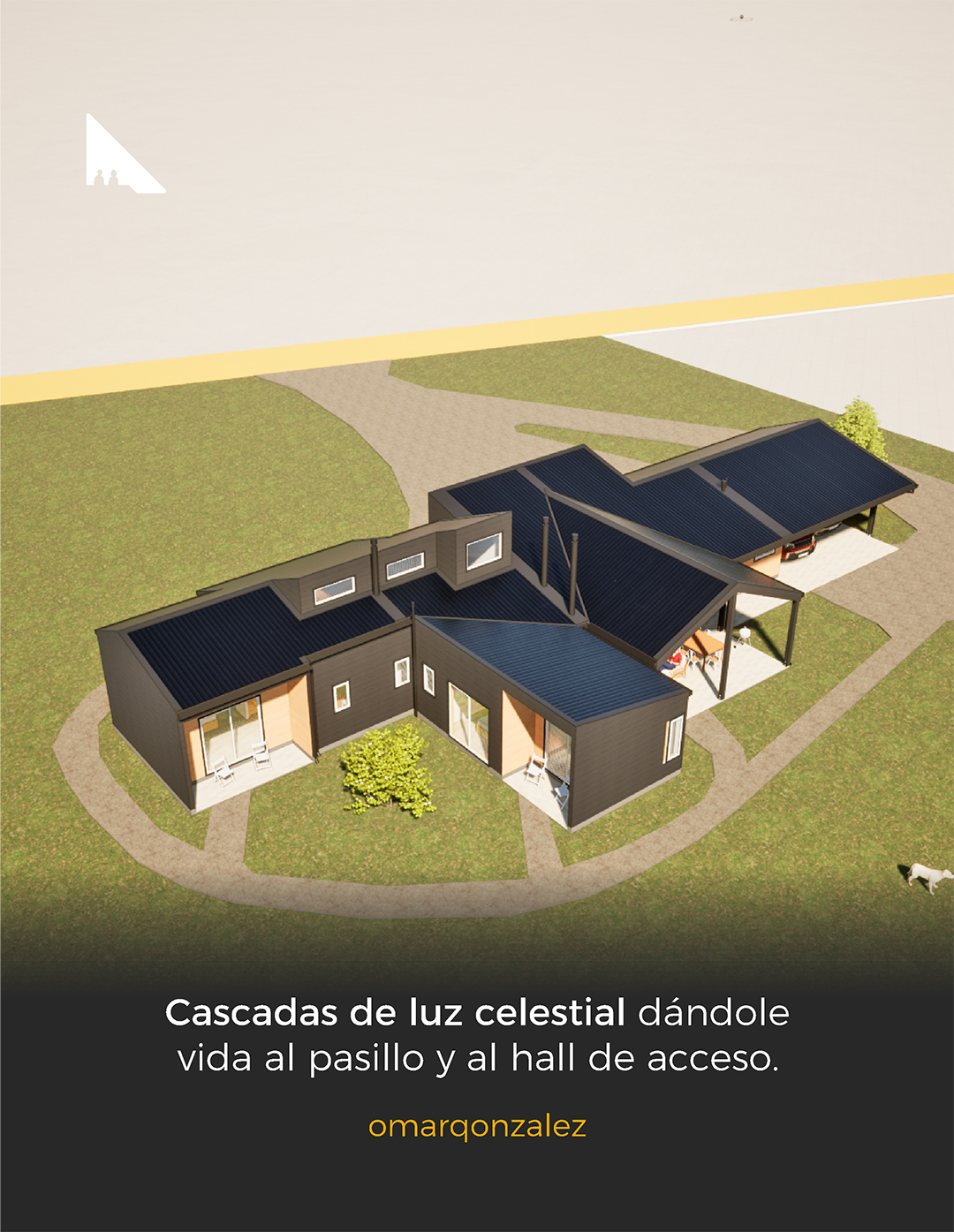 Este es un proyecto desarrollado para terrenos con holgura en cuanto a distanciamientos hacia los deslindes; mínimo 3m, para cumplir con todas las disposiciones de la Ordenanza General de urbanismo y Construcciones (Chile).